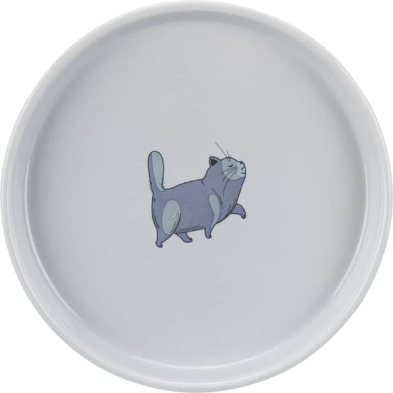 Bļoda dzīvniekiem, keramika : Trixie Bowl, flat and wide, cat, ceramic, 0.6 l/ø 23 cm, grey