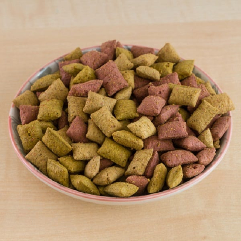 Kraukšķīgi, vitaminizēti spilventiņi ar sieru, pienu un jogurta garšu kaķēniem.